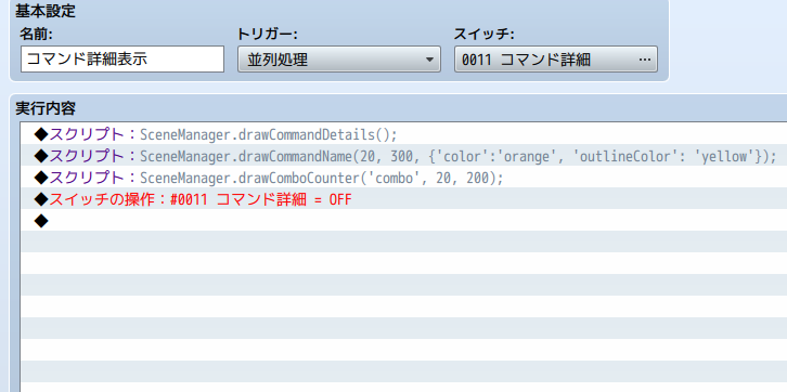 コマンド情報の描画方法は、下記の関連スクリプトを参照してください。