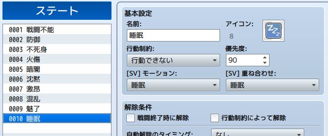 この条件は「キャラクターが行動制約を受けている時」となります。