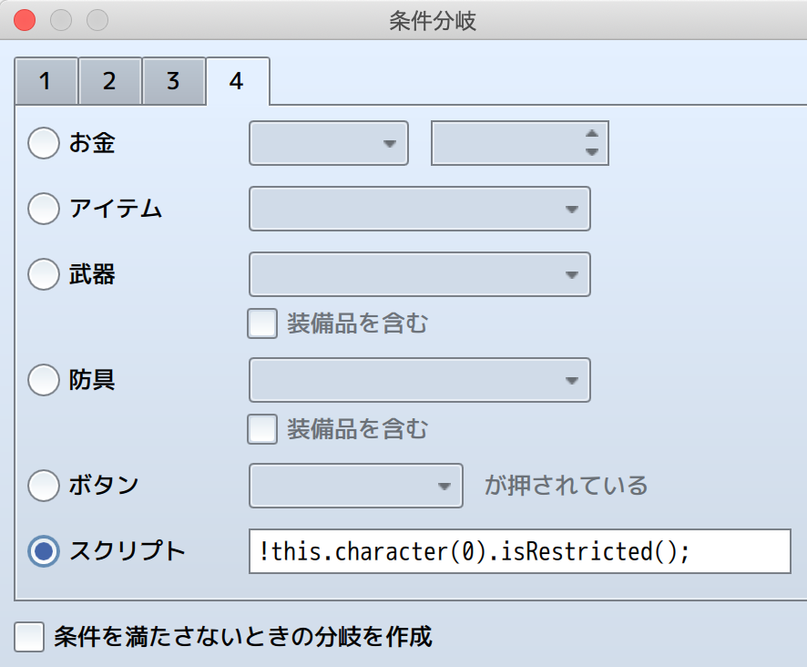 平常時の処理を作る場合は条件分岐の「それ以外」で設定するか、スクリプトの前に半角の「!」を付けて