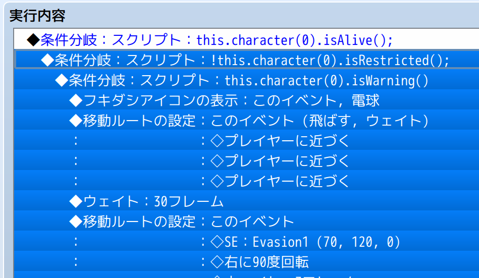 一見手間ではありますが、行動できない時の処理も自由に設定できるため、最終的なゲーム制作の幅は広がります。