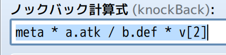 (<knockBack>の値)×(使用者の攻撃力)/(対象の防御力)×(変数[2]の値)