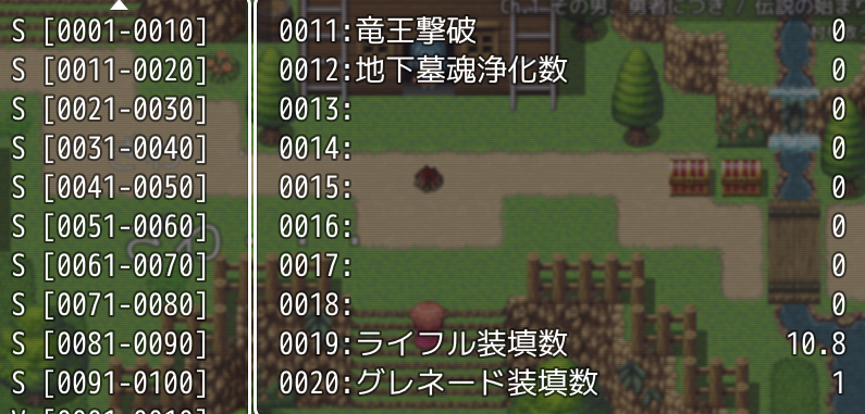 ただし、そのためにはイベントコマンド「スクリプト」で変数を操作する必要があります。