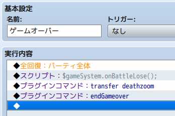 必要に応じて全滅時やエネミーの撃破時に演出するコモンイベントに併せて記述して下さい。