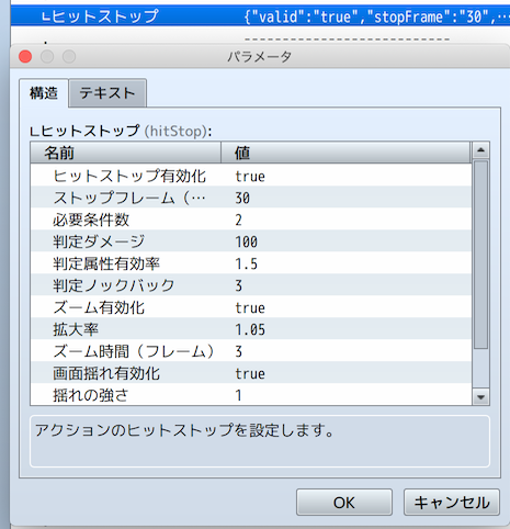 それぞれヒットストップ発生に必要な条件の値を設定します。