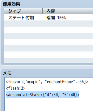 そのため、後述する<limitTime>を併記することで、初めてステートの効果が発揮されます。