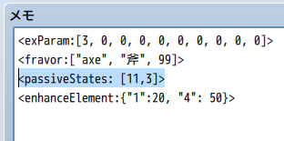 このノートタグをいずれかの形で持ったアクターや敵キャラは、タグを持っている限り指定されたステートが永続付与されます。