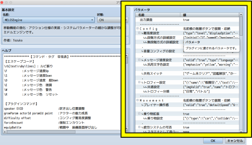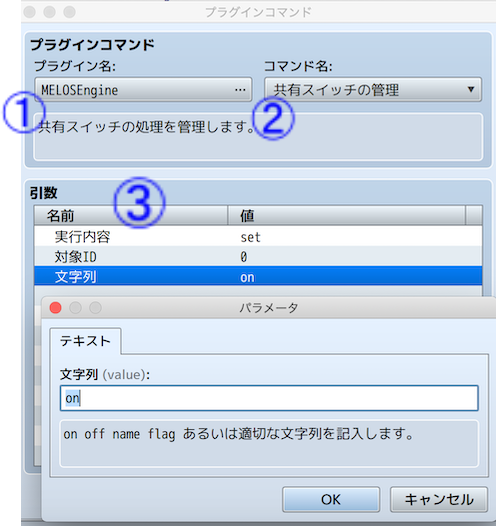 プラグインコマンドの中には「引数」と呼ばれる、処理内容を細かく決めるためのデータが必要な場合があります。