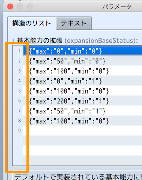 このパラメーターリストの左側に付記されている数字がリスト番号です。